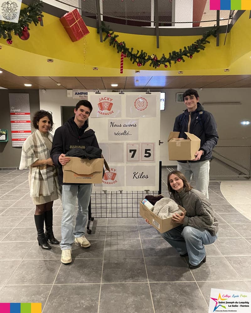 Animée par des lycéens engagés du Loquidy, la collecte a permis de réunir 75 kilos de dons : vêtements chauds, duvets, couvertures, bouillottes, produits d’hygiène, croquettes pour chiens… Autant de gestes concrets pour soutenir les personnes sans-abri rencontrées lors des maraudes organisées régulièrement à Nantes. Il est aussi possible d’écrire des lettres de soutien ou de rejoindre les maraudes en suivant leur compte Instagram.