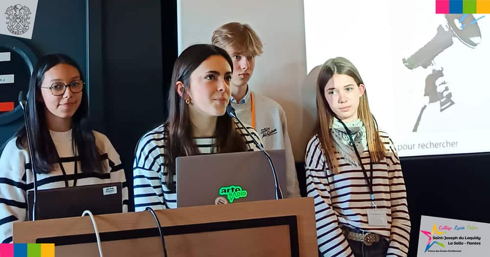 C’est la vidéo de Julia PRIOU, Maëlys COUDRAY, Victoire SÉGUÉLA et Brieux THIBOUS, qui a été distinguée par un jury présidé par Sonia Devillers, parmi plus de 900 productions venues du monde francophone. Une récompense qui a permis à tous leurs camarades de faire le déplacement à Paris !